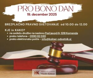 V naši pisarni tudi letos sodelujemo pri projektu Odvetniške zbornice Slovenije “Dan odvetniške pravne pomoči PRO BONO 2025”.